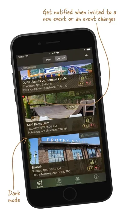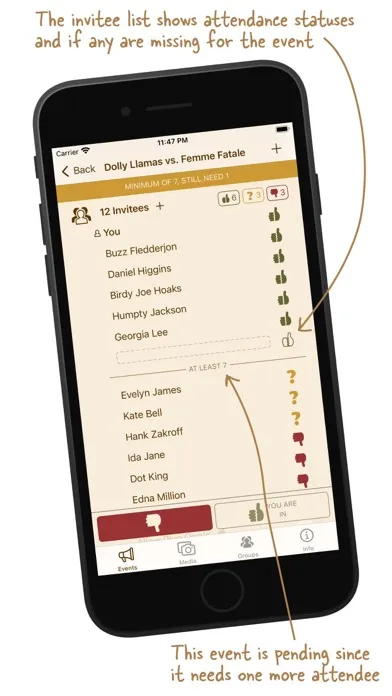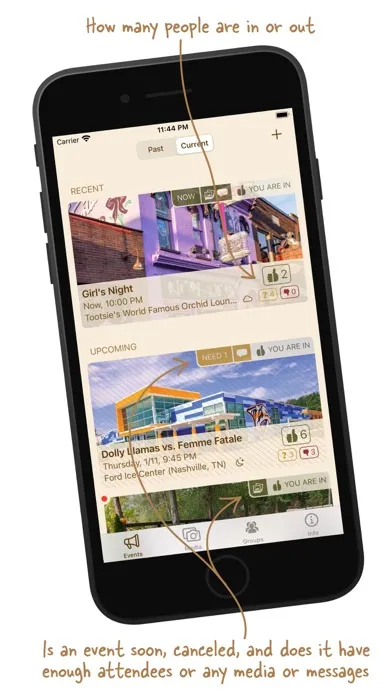 Quickly plan informal events with your friends and find out who's in and who's out. No need for emails, social media logins, or clunky text messaging when you can quickly create an event, invite friends, and get notified of their attendance, even "plus one's." It's just enough for quick get-togethers and nothing more!