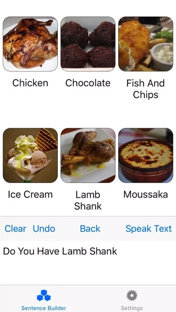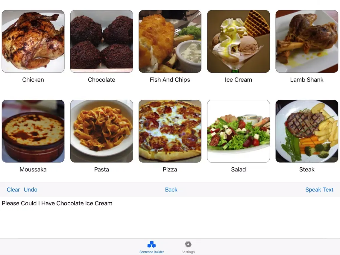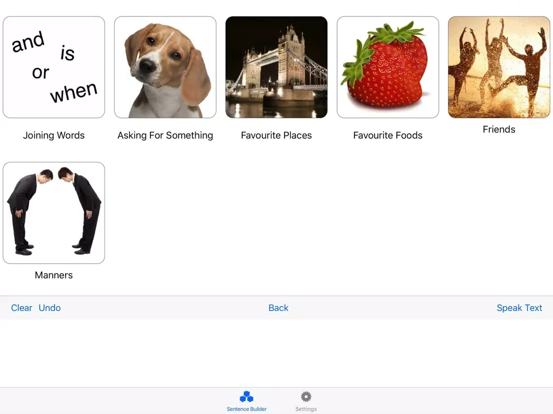 Quickly string multiple words together to create sentences from a selection of editable, pre defined words and phrases before speaking.