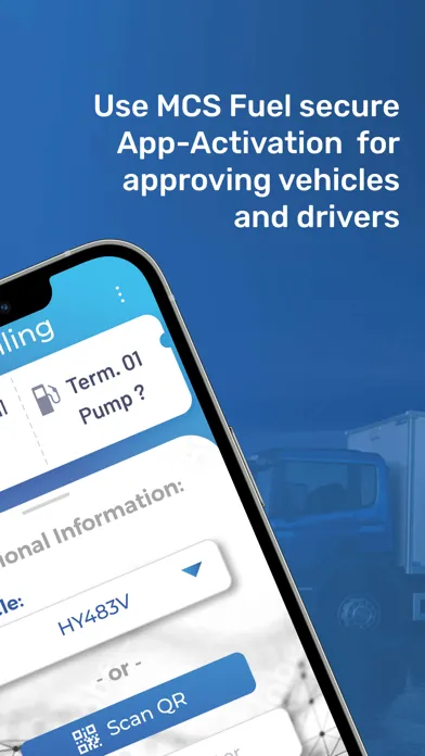 Identify the vehicle for fuelling from a pre-approved drop-down list or scan an in-cab QR code.