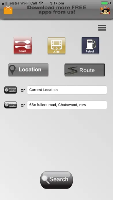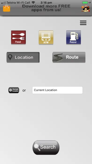 •Location search for food outlets, ATMs and fuel.