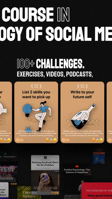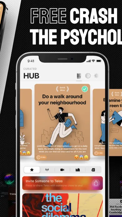 Telos is a brand new essential crash course on the psychology of social media. We are talking book summaries, podcasts, articles, videos, papers, and even exercises to curb social media and embrace the latest in positive psychology. With over 100+ challenges you can build the healthy tech relationship you deserve with Telos.