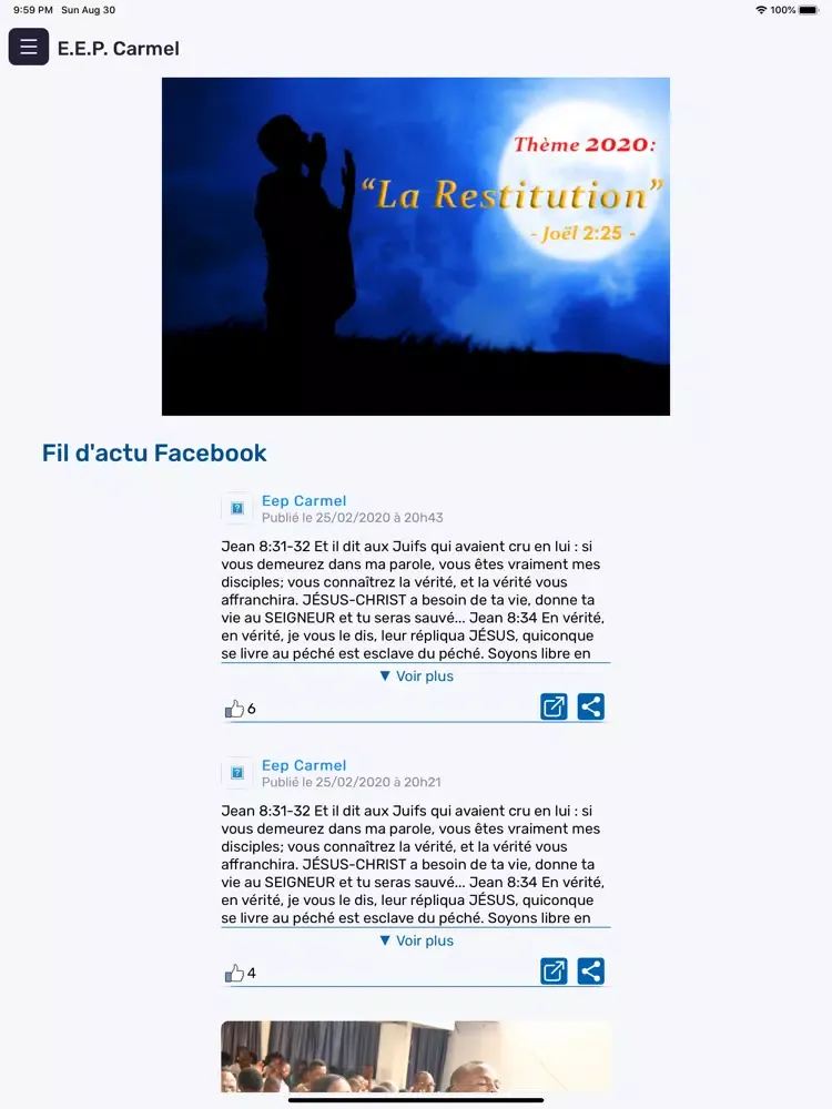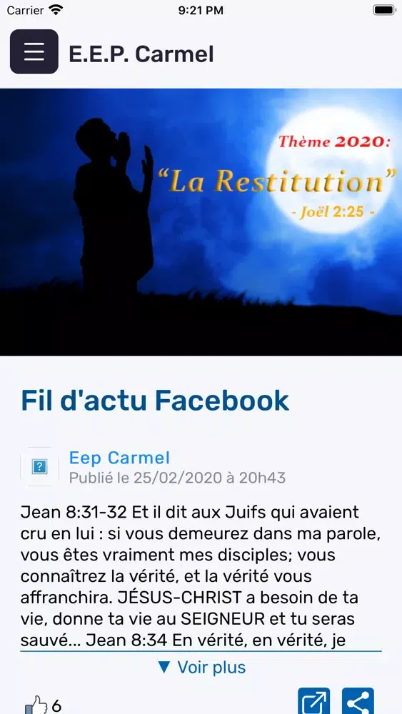 L'application mobile de l’Église Évangélique de Pentecôte Carmel à Kinshasa / RD Congo.