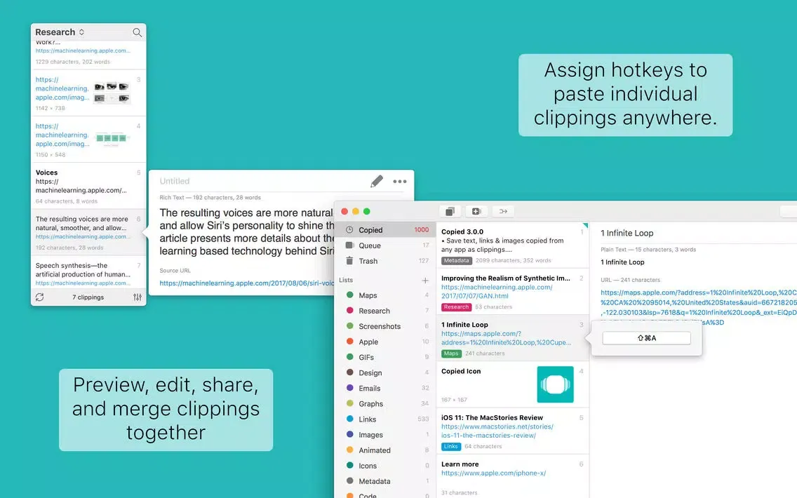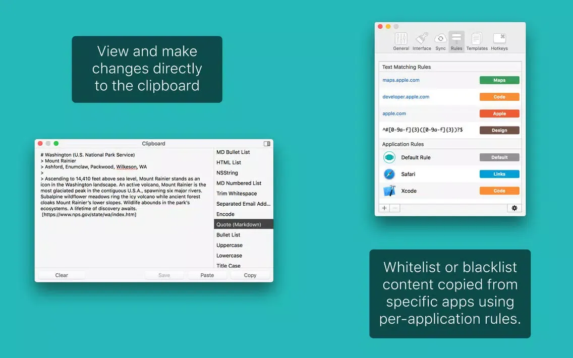 • Create rules to automatically add clippings to lists or apply a text formatter.