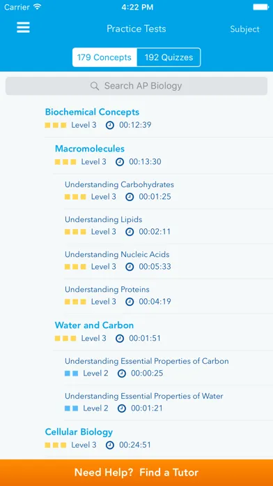 Users can take practice tests in their subject area, or utilize the many diagnostic tests available to assess their general aptitude while also receiving feedback on their performance, broken down by concept area. Identifying study weak spots and sharing test results with a parent or tutor has never been easier. Plus, utilize the learning app's massive library of premade flashcards, or create your own using audio, photos, and text to optimize the learning experience for every type of learner.