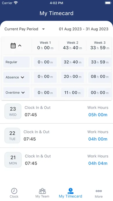 PreciseTime is a time and attendance tracking software by Wasp Barcode Technologies. The PreciseTime mobile app allows employees to clock in and out from a mobile device and to see their timecard. Managers can use the mobile app to see who on their team is currently clocked in and view their team member's timecards. PreciseTime can be configured to allow employees to clock in from a physical timeclock, the PreciseTime web interface, the mobile app or any combination of the three. The web application that goes along with the mobile app is where you can set up your employees, pay period settings, and payroll rules as well as run reports and export timecard data for payroll purposes.