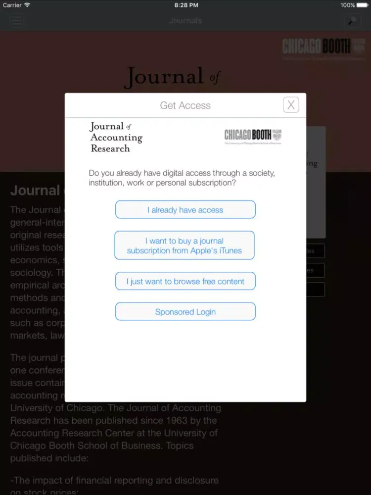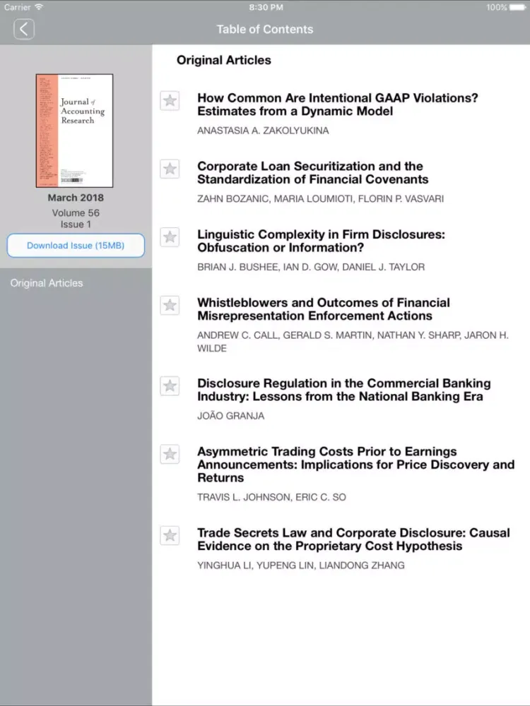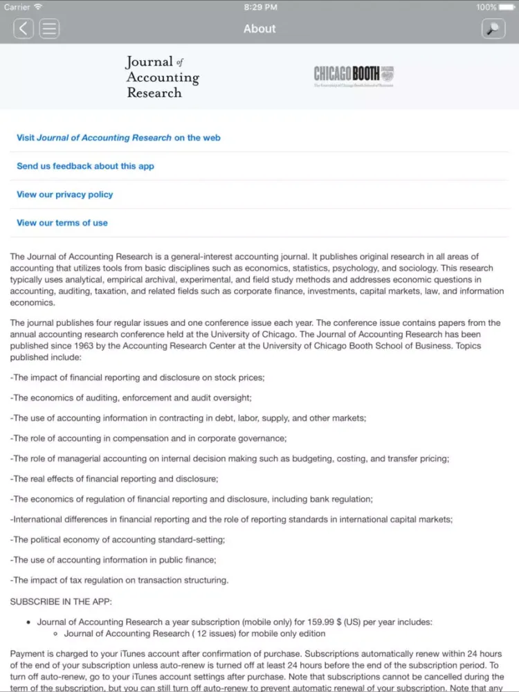 CURRENT SUBSCRIBERS to Journal of Accounting Research can “pair” their device with their personal or institutional subscription to enjoy full access in this iPad edition.