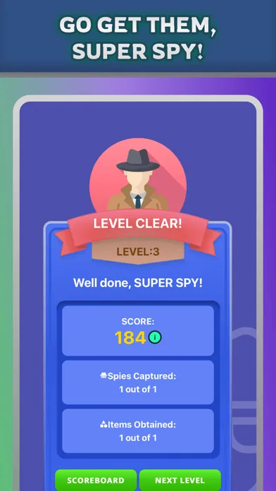 Earning a certain score at one level will unlock the next level. In the shop, you can also purchase spy tools to advance faster in the game, or even to unlock all levels. However, it is entirely possible to play the entire game without having to buy anything.