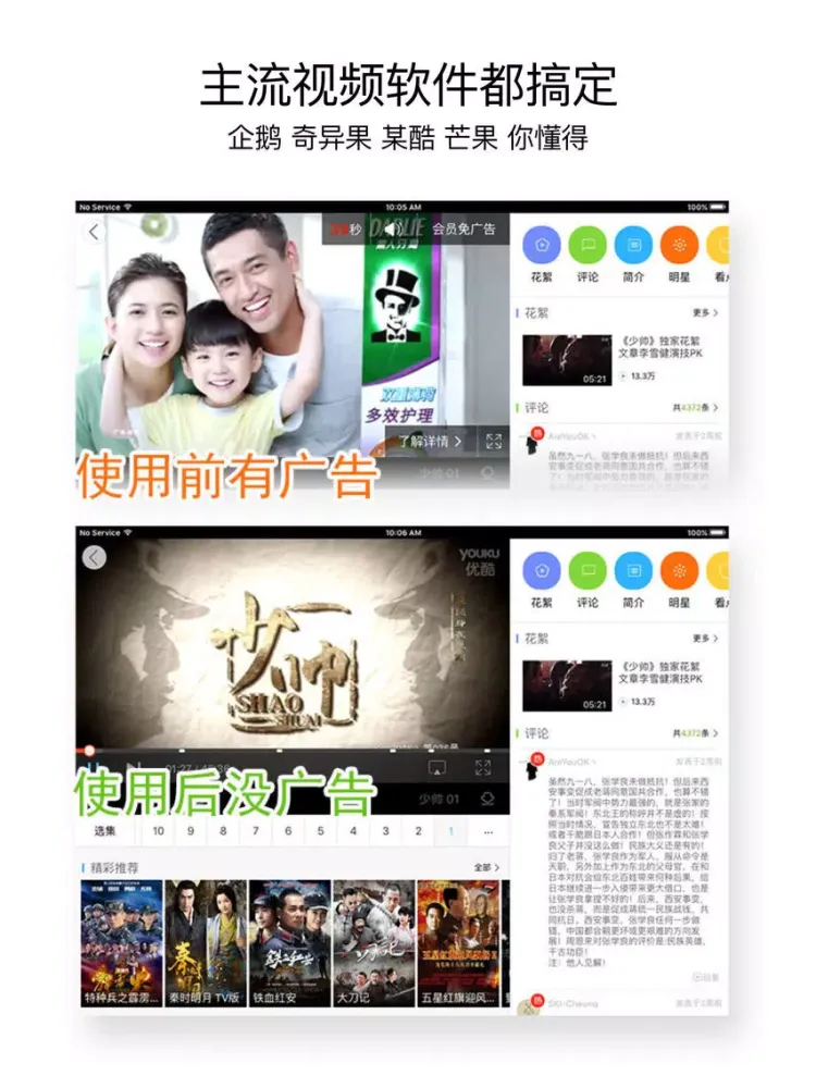 **冰点优惠中**首次打开请下拉更新拦截规则!**Infy 广告拦截是iPhone版的广告拦截神器,iPhone上最好最强的广告过滤app。支持Safari浏览器,有效拦截百度推广等各种网页广告以及优酷视频,搜狐视频,芒果tv, 爱奇艺,腾讯等视频应用的广告拦截。全新的全局拦截广告,告别视频 应用 游戏 小说中的各类广告(百度网盟,腾讯广点通,谷歌admob等等)。如果你厌倦了等待和干扰,Infy 拦截是你的最佳选择。