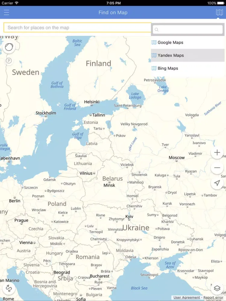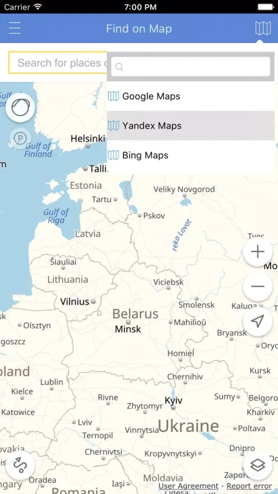 The app allows you to choose the map engine and search the address on it.