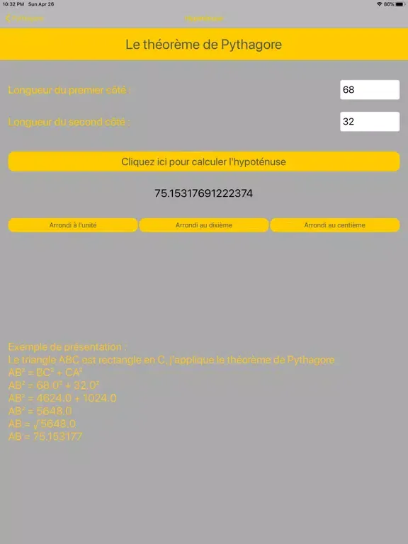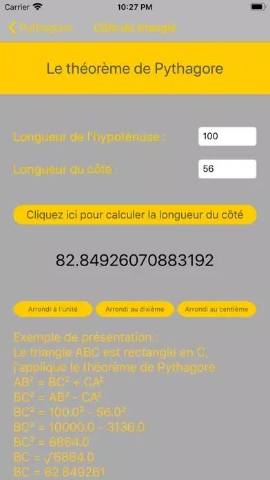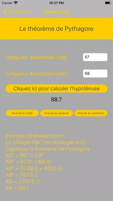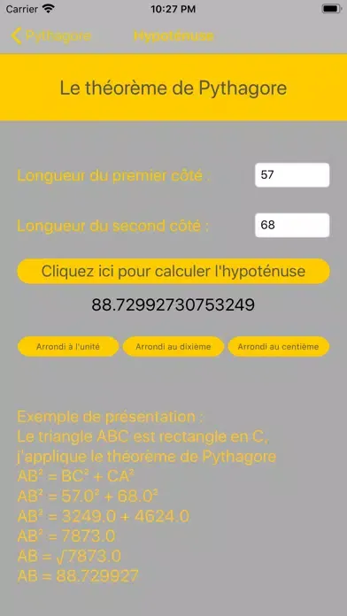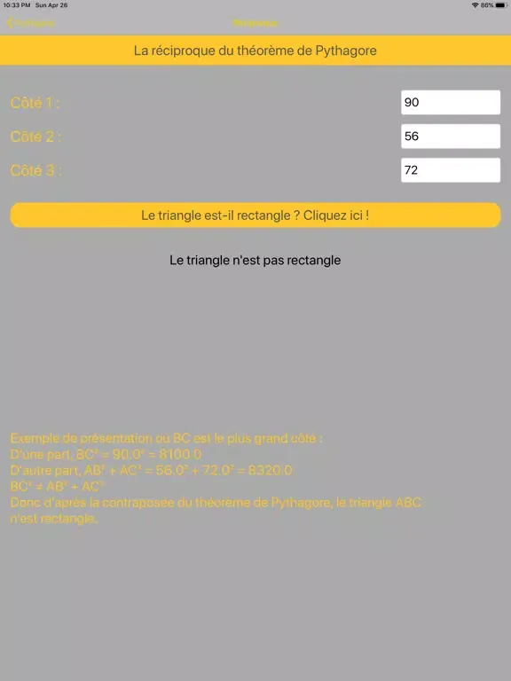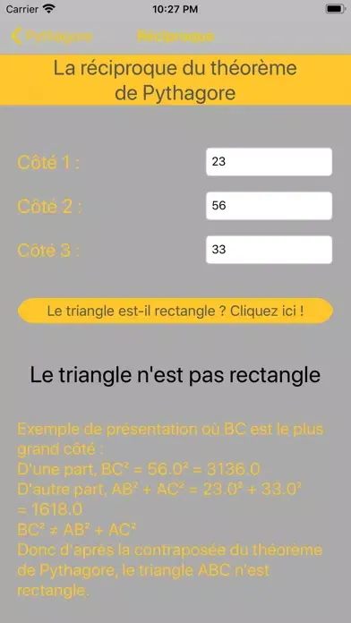 En entrant les trois longueurs d'un triangle, vous pourrez savoir si un triangle est rectangle ou non.
