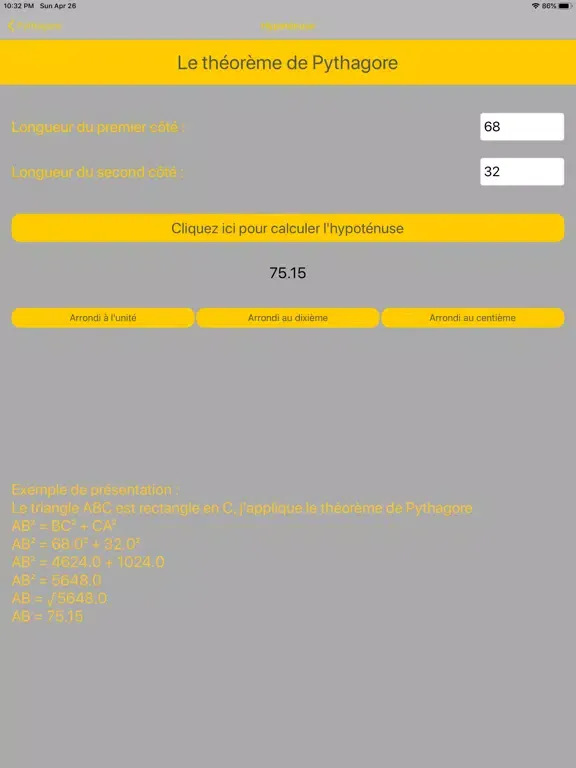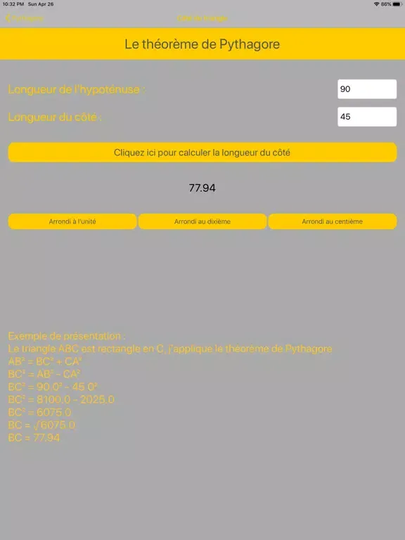 Grâce à l'application, vous pourrez calculer la longueur manquante dans un triangle rectangle.