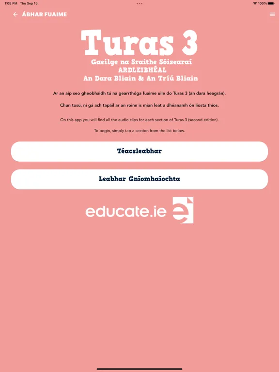 Learn Irish with the Educate.ie Turas 3 (2nd Edition) language app.