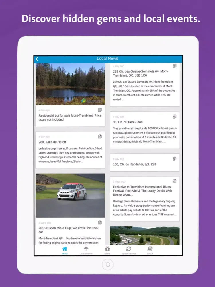 - Browse the local news feed and stay up-to-date with what’s happening in Mont-Tremblant.