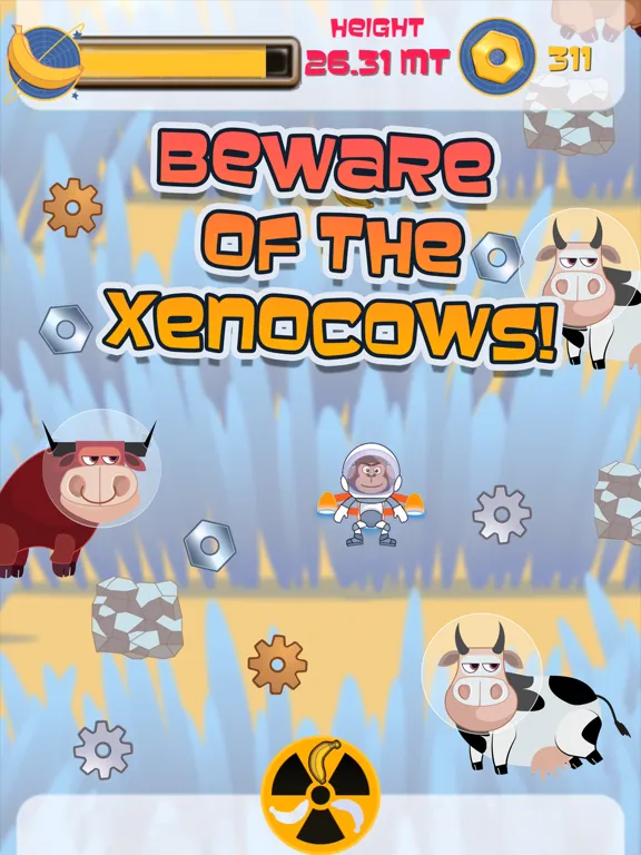Get ready for a noisy takeoff! Help Max the Astronaut Monkey get back home with his high-tech jetpack, famously powered by eco-friendly flatulent energy. Rip through space thanks to this powerful yet all-natural gas that lets you fly higher and higher!