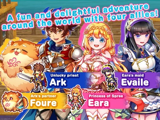 Make use of up to three roles per character to enjoy the variety in skills, effects and even costumes. In turn-based battles you can charge special orbs to use Act Over and launch up to four continuous actions. It's fun just to watch the charm of pixel arts in this fantasy JRPG!