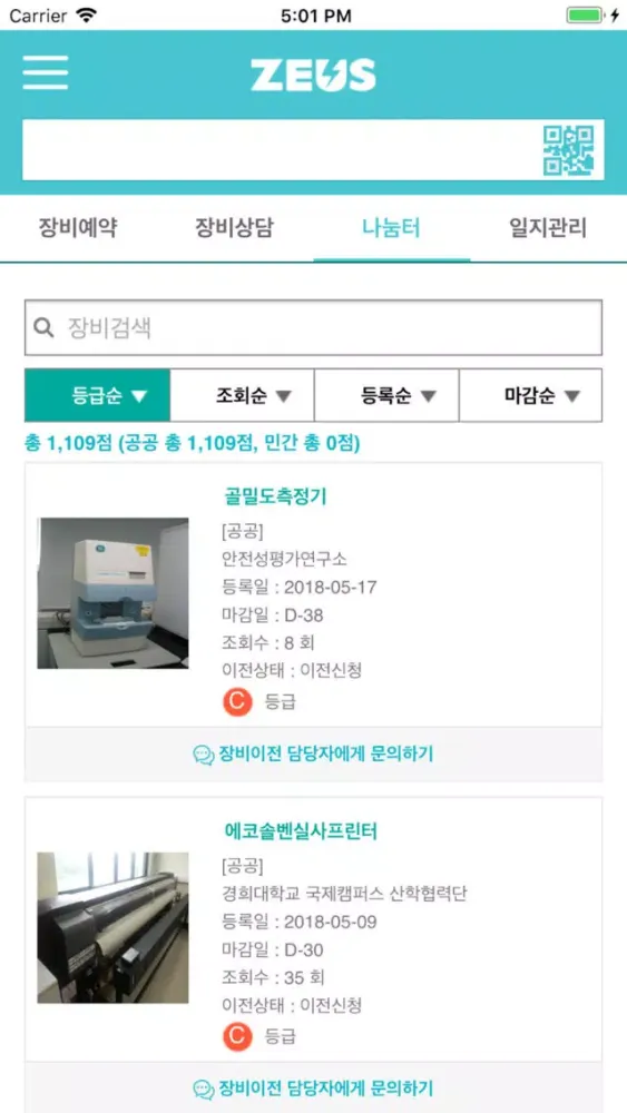 ZEUS 장비활용종합포털 모바일앱