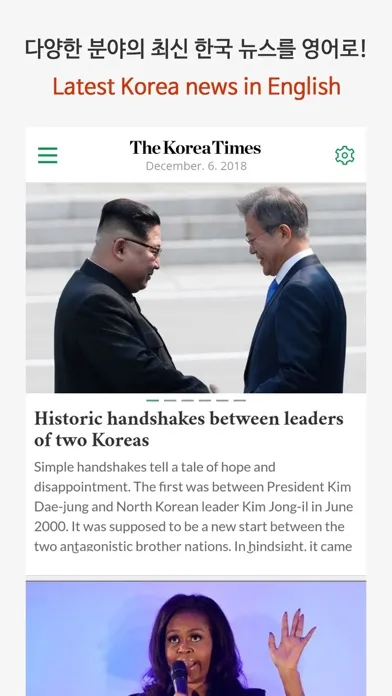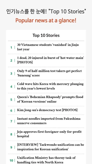 The Korea Times is Korea’s oldest English-language daily since 1950 and, according to Amazon's web-tracking platform Alexa, the nation's top-ranking English news provider. It gives updates, in-depth analyses and blogs on subjects from North Korea, hallyu, economy and business to domestic and international issues. It also offers an on-site video coverage “On The Spot” that covers Korea's hot trends and events.