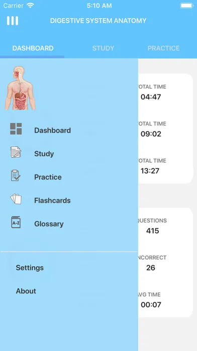 Find out and improve your information answering questions and learn new knowledge about human digestive anatomy by our app.