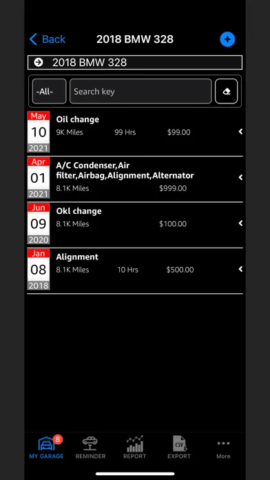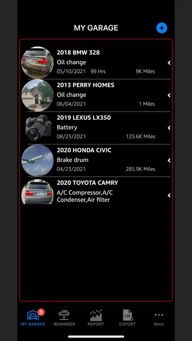 -Add/update vehicles info such as photo, VIN, license plate, year, make ,model, tire size, oil filter type, current odometer, total annual maintenance cost for each vehicle, etc.
