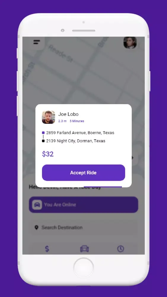 This mobile application assists drivers to accept rides requested by the users, reach users location and drop users to their preferred location.
