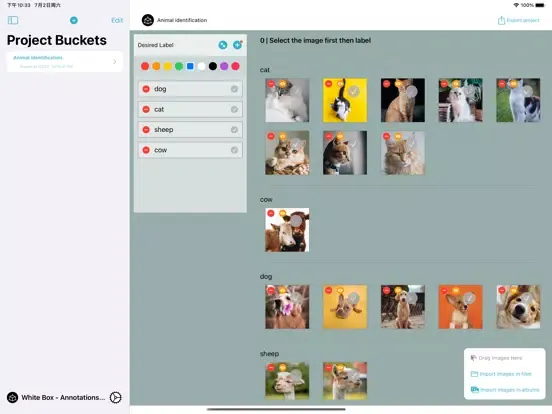 The app is used to classify images or to locate and label objects on images when visual machine learning is required. The results can be exported to tools like Create ML for machine learning training.