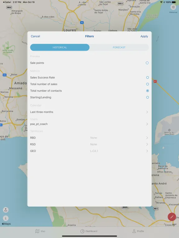 Aplicação operacional que permite às equipas de vendas perceberem através de modelos analíticos avançados onde devem materializar o seu esforço para aumentarem a sua performance de vendas e recolher formulários e contatos com visualização do histórico.