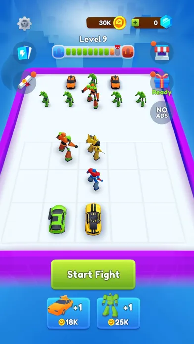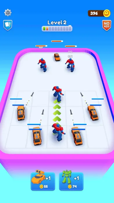 - Craft and Conquer: Embark on a journey to greatness by procuring cars and robots. Unite similar units to unveil upgraded versions and prepare for battle. Each enhanced unit boasts superior speed and greater earnings, ensuring an exhilarating fusion experience. Delve into the thrill of the merge!