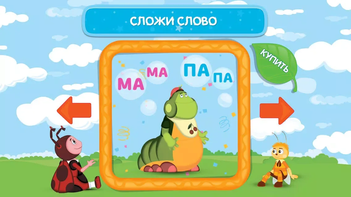 Полная версия включает 10 уровней, из которых первые 4 - работа со слогами и отдельными буквами, а следующие 6 посвящены слову.