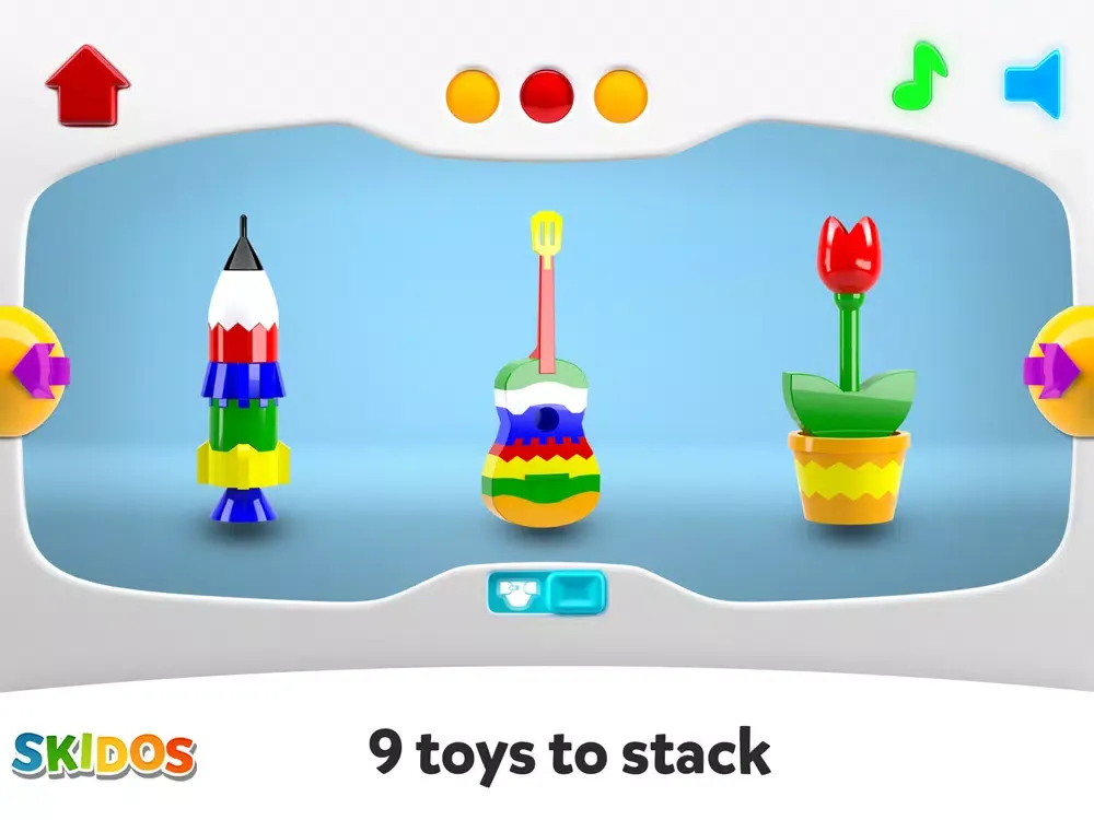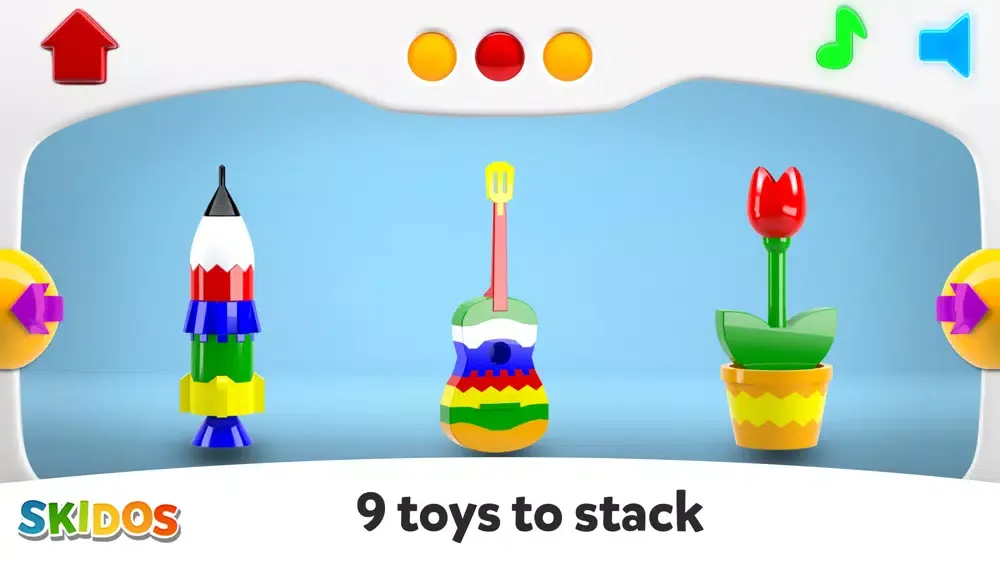 - Stack the pieces in the right order and create amazing toys like a rocket, a tower, or a guitar;