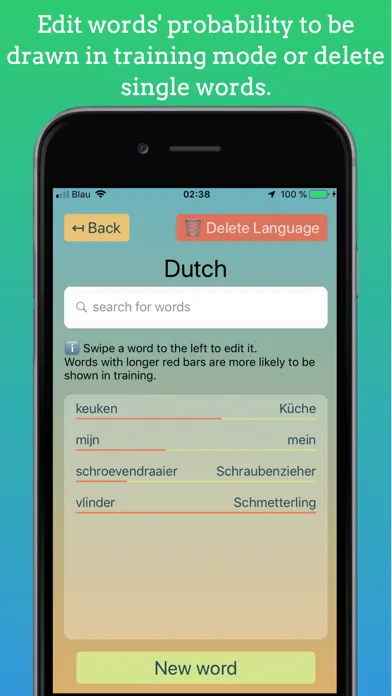 Learn a new language by practicing words and meanings in a language dictionary and training app.