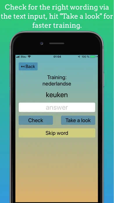 Enter the training mode to test your memory and learning skills. Answer simple YES or NO questions, type word meanings and learn all you want!
