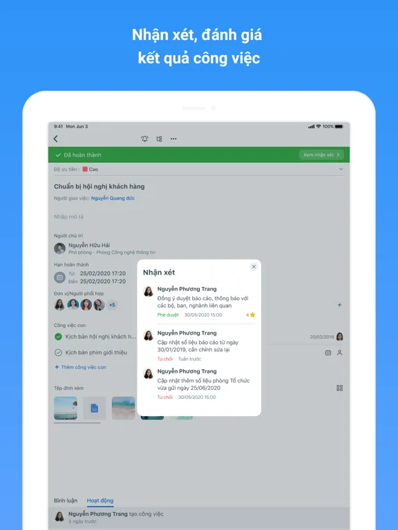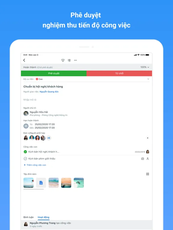 - Cập nhật tiến độ, phê duyệt nghiệm thu công việc